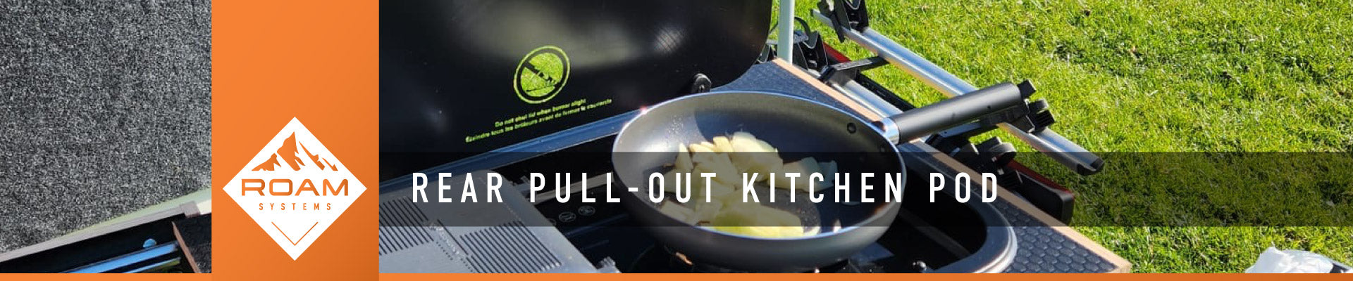 Create the perfect compact kitchen setup in your campervan with our Rear Pull-Out Kitchen Pod, designed to accommodate a twin burner hob (hob not included). This innovative kitchen pod is made from high-quality aluminium, laser-cut and precision-engineered for a perfect fit, and finished in a textured black powder coat that matches the rest of your ROAM Systems setup.